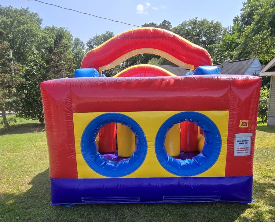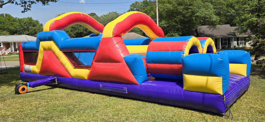 🎉 Introducing the newest addition to our lineup: the Monster Obstacle Course! 🏁 At a whopping 34 ft long with a wider 12ft wide footprint, this inflatable is designed for maximum thrills and excitement for older kids, teens, and even adults! 💪 With two lanes of pop-ups, a mini slide, and crawl-through obstacles, it's the ultimate challenge for a 1-on-1 race to the finish line. Who will emerge victorious in this epic showdown? Gather your friends and family for an adrenaline-pumping competition like no other! Book now and be the first to experience the Monster Obstacle Course adventure! 🏆