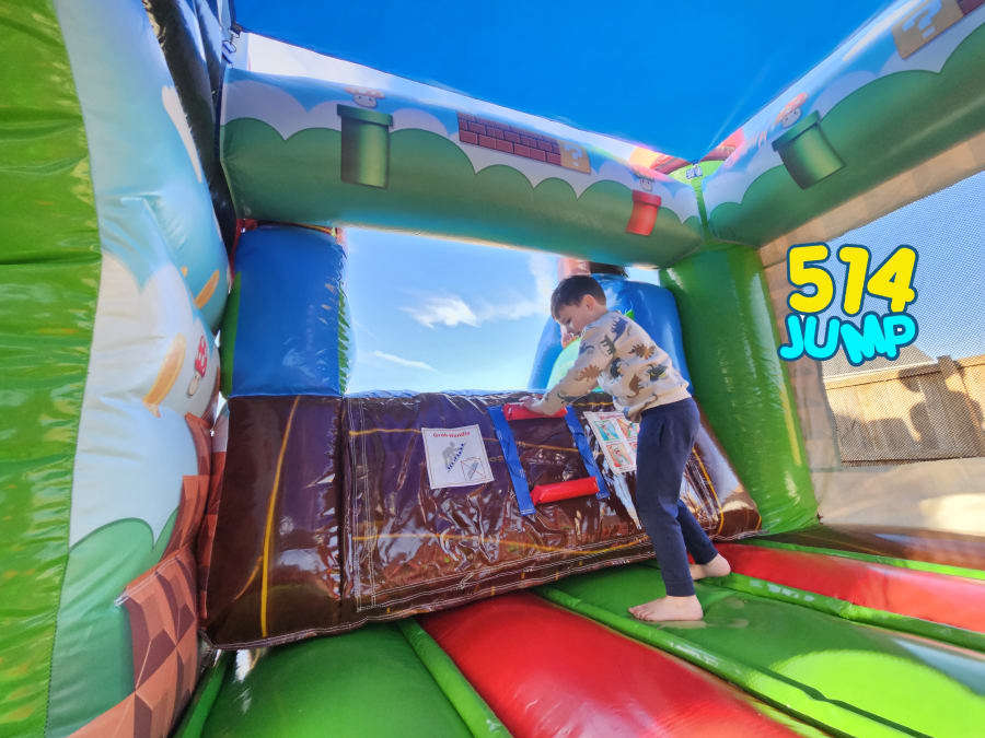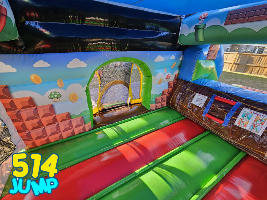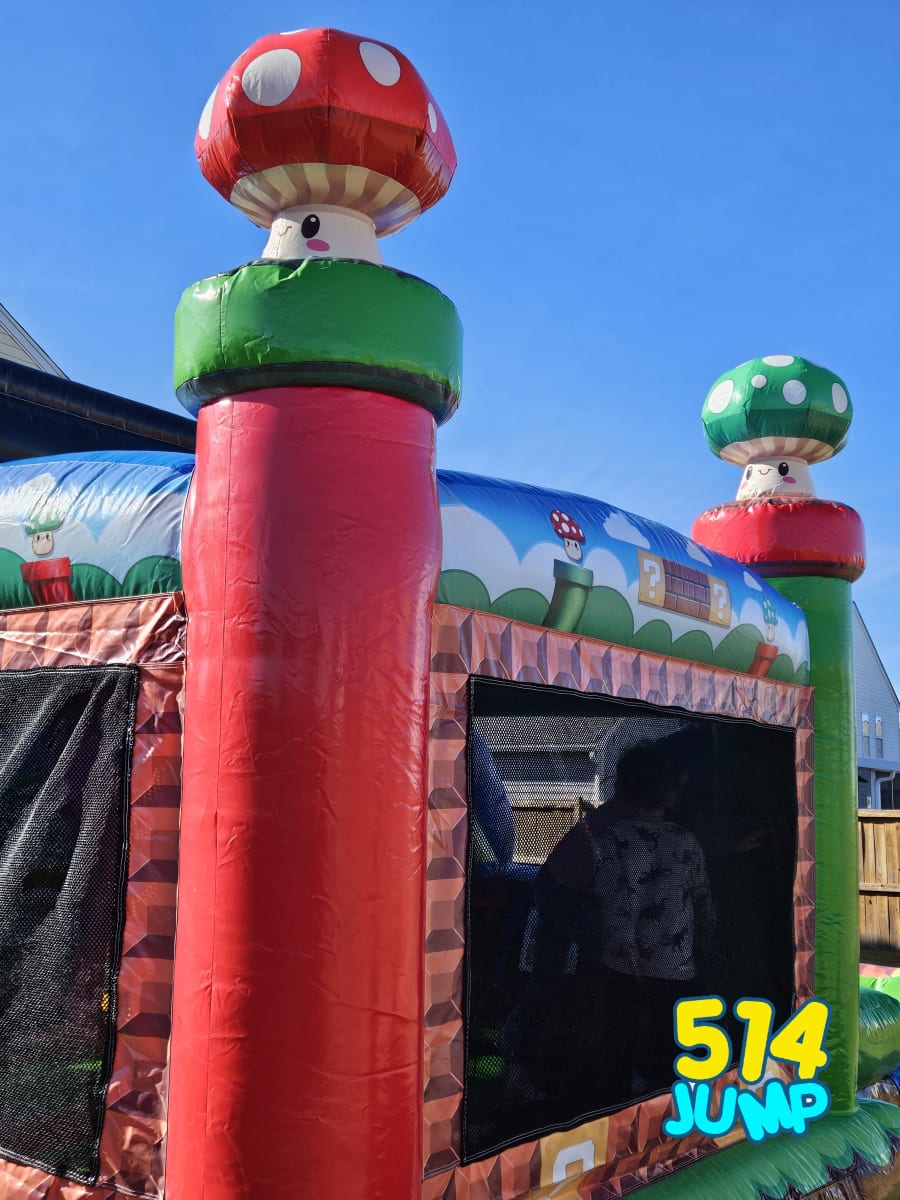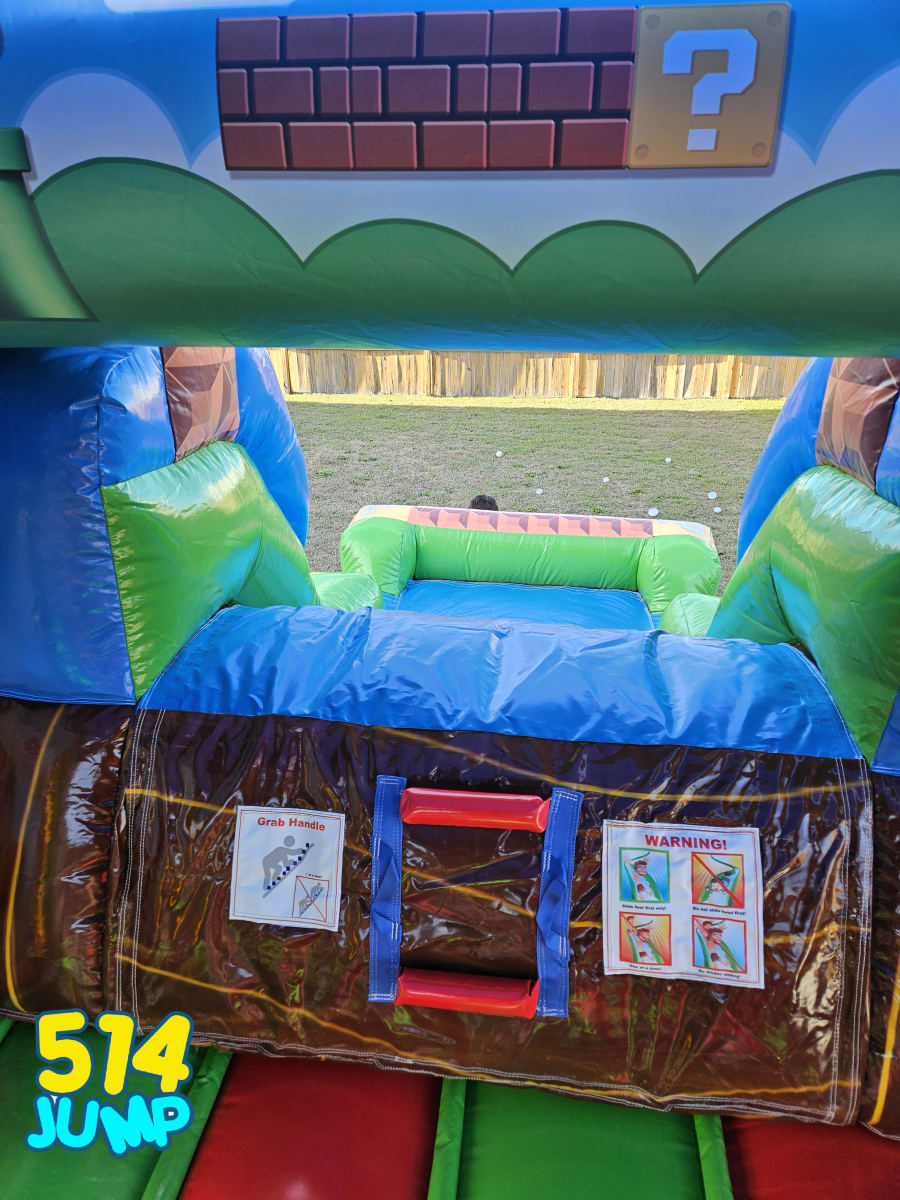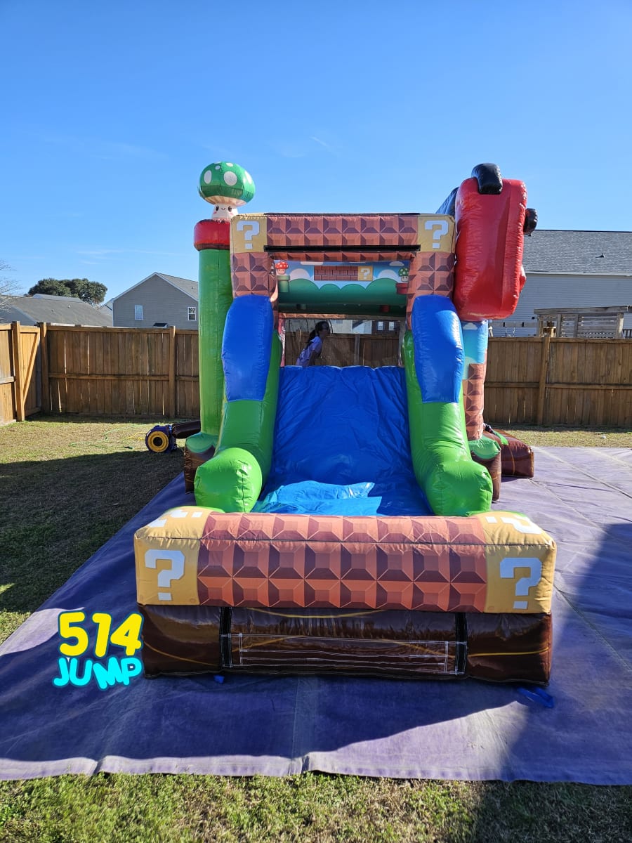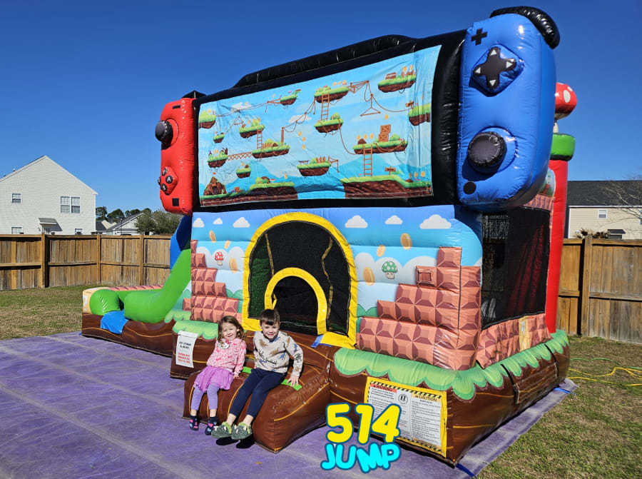 Power up your little one’s party with the Toddler Gaming Combo from 514-Jump—a Super Mario-inspired inflatable that brings the Mushroom Kingdom to life for Lowcountry toddlers! Designed with tiny adventurers in mind, this compact inflatable features a game controller-themed entrance that sets the stage for fun from the moment they climb inside. Vibrant graphics of floating islands, giant mushrooms, brick blocks, twisty tubes, and shiny coins decorate every corner, sparking imaginations as kids bounce in the spacious, low-to-the-ground bounce area, scale the gentle climbing wall, and zip down the toddler-friendly slide for a victorious finish. Crafted from durable, lead-free materials with enclosed netting for safety, it’s the perfect way to bring safe, giggly excitement to birthdays, playdates, or family gatherings in Moncks Corner, Summerville, and beyond. With 514-Jump’s 23 years of family-operated experience and ALL 5-star Google reviews, you can trust us to deliver clean, reliable fun right on time—book the Toddler Gaming Combo today and let your little players jump into the action!