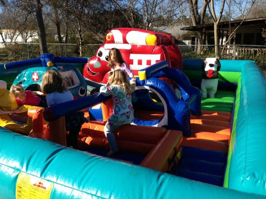 Description: The Toddler Town is a great combo designed specifically for toddlers and small children. Standard bounce houses that offer only jumping are large and enclosed with a roof above and can be loud which can frighten a toddler making them feel trapped and scared. To help put toddlers at ease the toddler town has an open top so lots of light comes in and loud sounds escape while allowing parents to reach in over the perimeter wall and play along. Rescue Heroes themed interactive popups and obstacles throughout the entire bouncy floor are toddler sized and stimulate exploration and adventure so your child can be a hero at their next party.