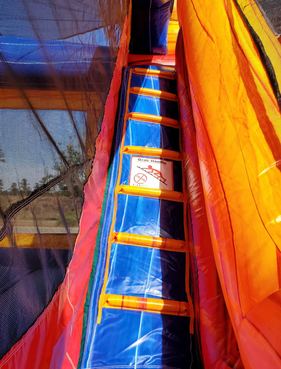This listing is for dry use only but all of our new combos have specially built heavy duty textured non skid material on the entrance ramp and on the entire jumping mattress virtually preventing players from slipping when used as a water slide with the pool attached. Click Waterslides to rent this unit as a water slide.