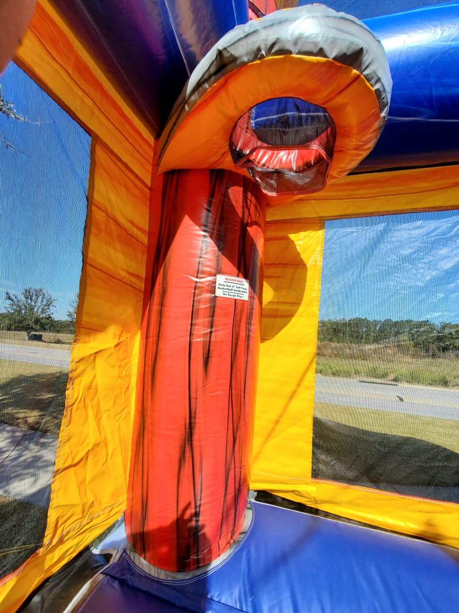 Description: 514-Jump is the #1 source for the best inflatables in the Lowcountry and brand new for the 2022 rental season is the Mystic River 4-in-1 combo! This bouncer combo has a basketball hoop built in so players can shoot hoops, bounce, climb up the ladder and zoom down the slide and out the bottom.
