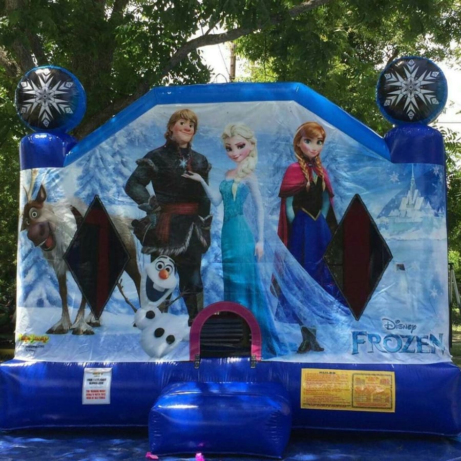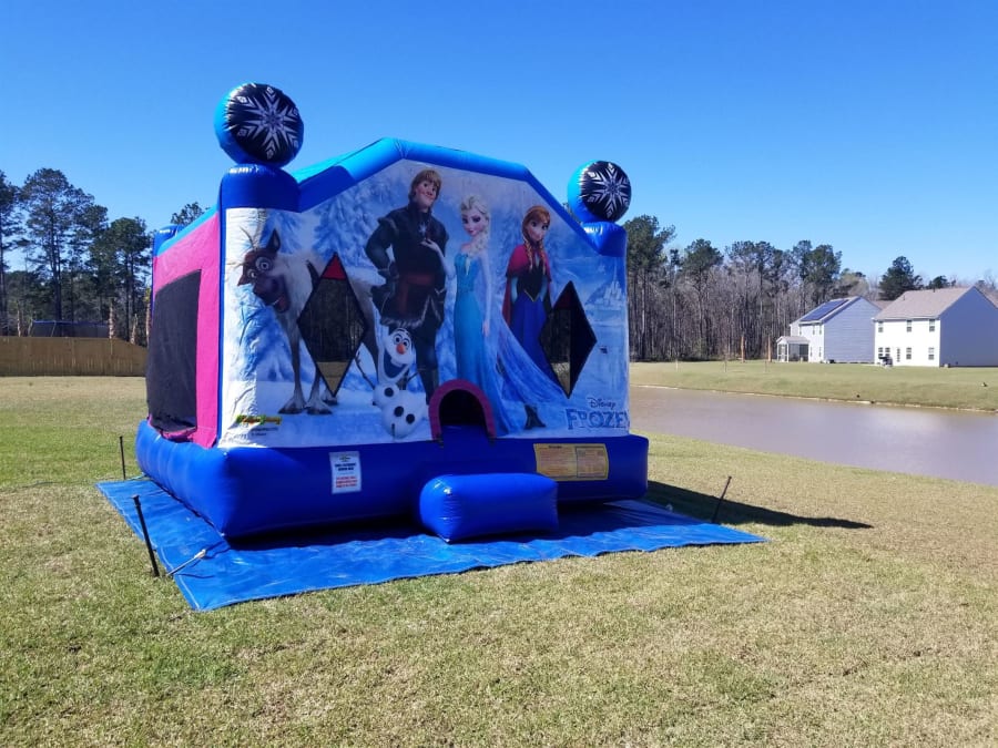 Description: Licensed Disney Frozen theme goes perfectly with a Anna or Elsa inspired party. Large open bouncing area for up to 8 players at once and finger safe mesh side walls that allows for easy supervision. Book now for your next party in Summerville, Moncks Corner, Ladson or anywhere in Charleston, Dorchester or Berkeley counties in SC.