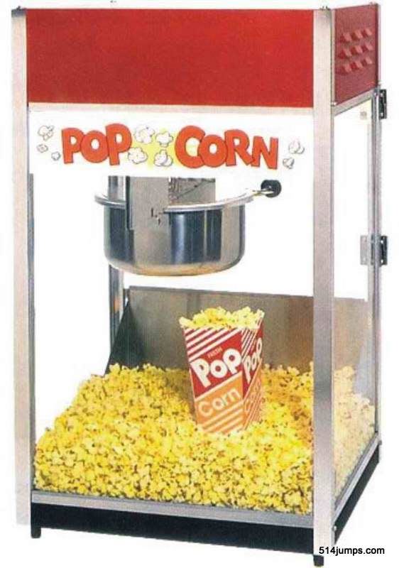 There is no bag of popcorn from a microwave that can match the genuine flavor of kettle cooked popcorn from a popcorn machine and the smell of fresh popcorn is enough to draw people in like Pavlov's bell. A popcorn machine rental including all supplies to make 75 servings is a great addition to any occasion. We bring a table, the machine, premium popcorn kernels, popping oil and salt flavoring along with printed popcorn bags and setup with the rental of any inflatable. We provide instruction and demonstrate how the machine works and you get to make popcorn anytime you want during your rental. Popcorn is a healthy treat that everyone enjoys and an affordable way to make your party memorable.