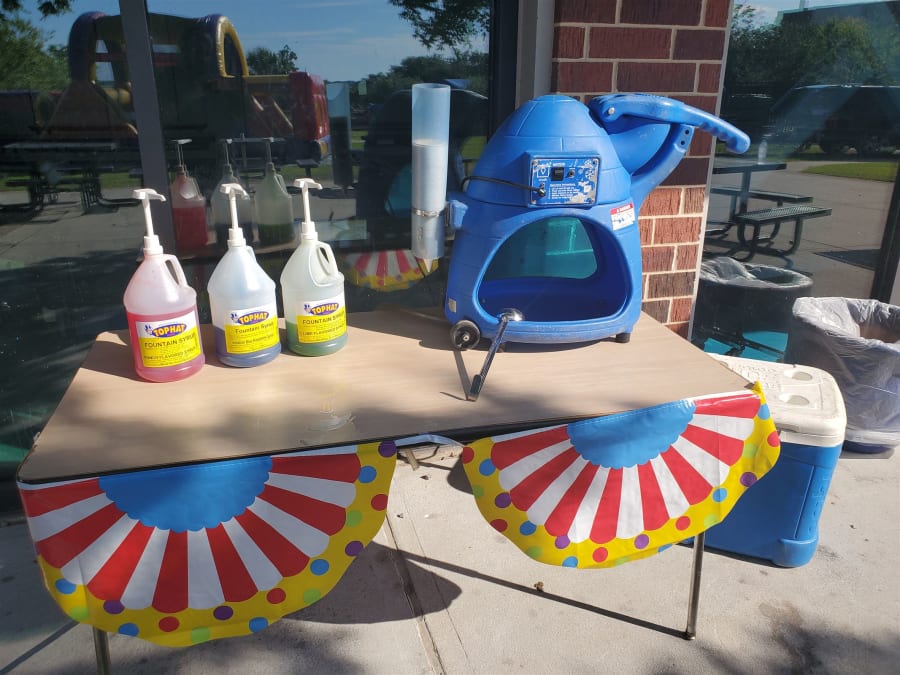 In the summertime here in Charleston SC it gets really hot, help cool everyone down with snocones at your event. A snocone machine rental includes all supplies to make 75 servings. We bring a table, the machine, a cooler full of ice, cone cups, and 3 flavors of premium syrup and setup with the rental of any inflatable. We provide instruction and demonstrate how the machine works and you get to make snocones anytime you want during your rental. A snocone machine is an affordable addition to any inflatable rental that will really put your party over the top and give your guests a refreshing treat that will have everyone smiling.