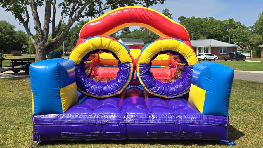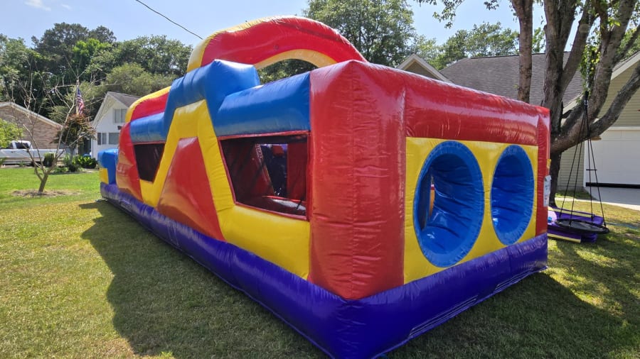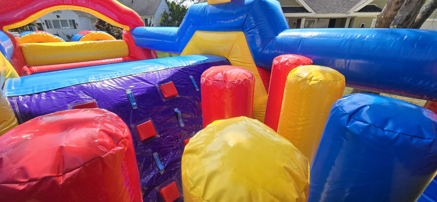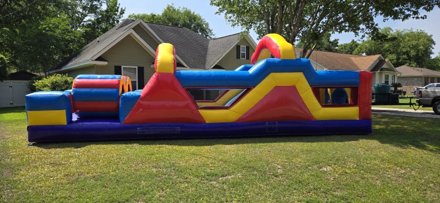 🎉 Introducing the newest addition to our lineup: the Monster Obstacle Course! 🏁 At a whopping 34 ft long with a wider 12ft wide footprint, this inflatable is designed for maximum thrills and excitement for older kids, teens, and even adults! 💪 With two lanes of pop-ups, a mini slide, and crawl-through obstacles, it's the ultimate challenge for a 1-on-1 race to the finish line. Who will emerge victorious in this epic showdown? Gather your friends and family for an adrenaline-pumping competition like no other! Book now and be the first to experience the Monster Obstacle Course adventure! 🏆